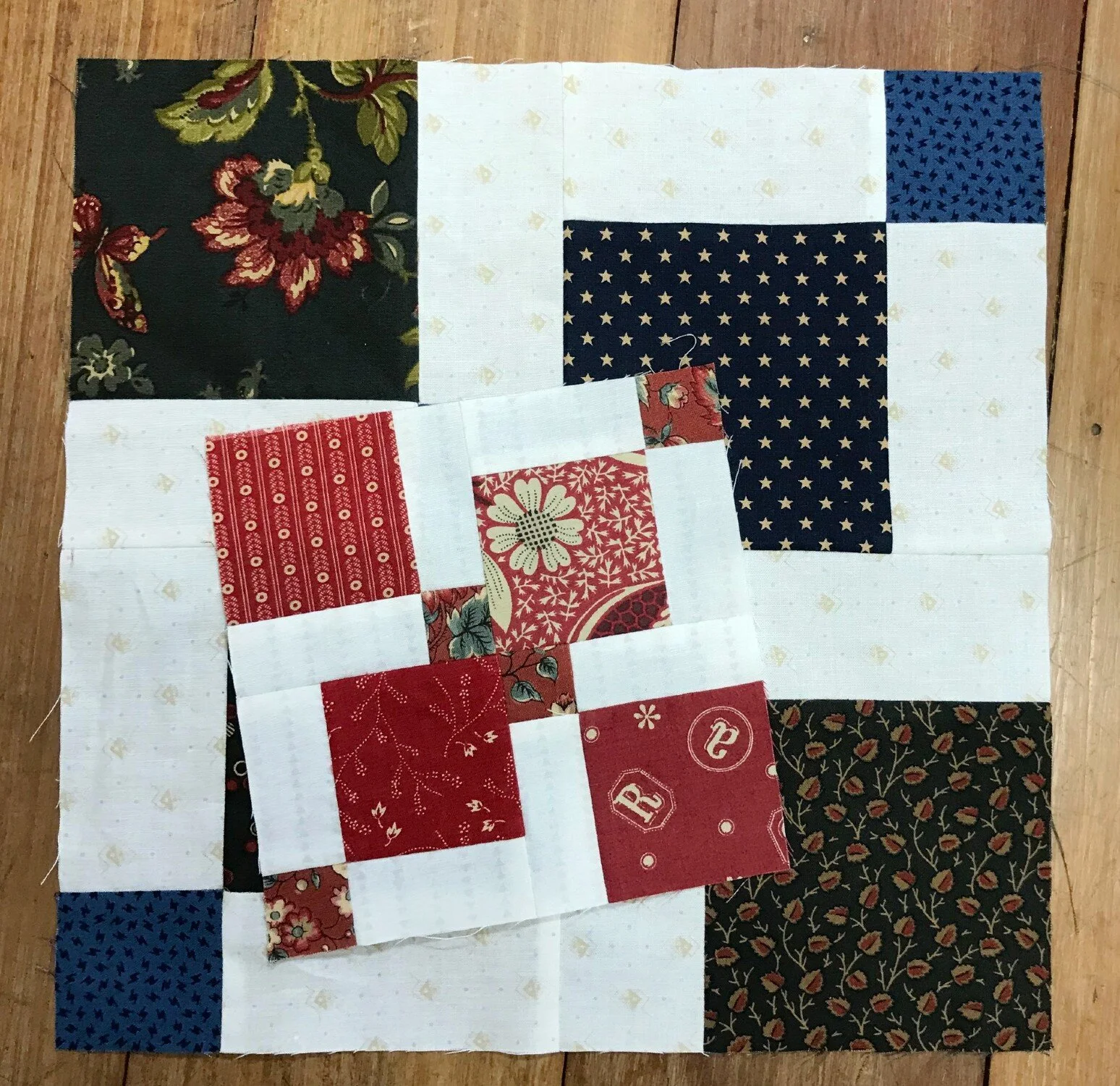 I’m sure that this block would have come about by someone accidentally slicing through a block - eek! Then deciding to rearrange it and voilà - a new block, the disappearing nine patch.